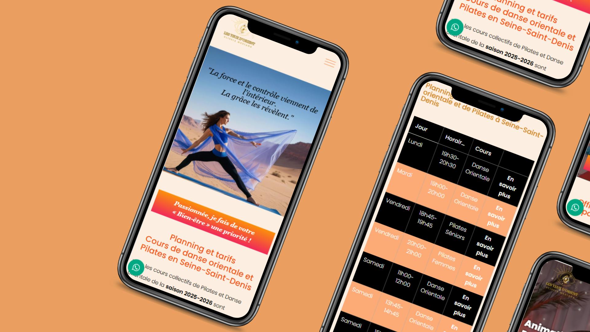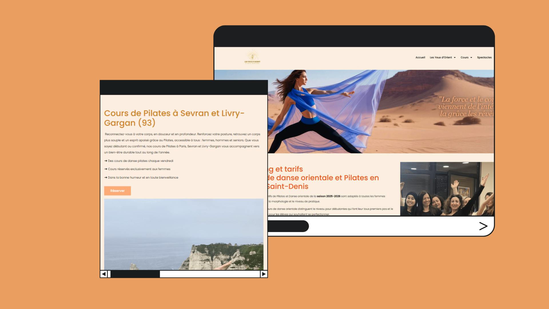 Les Yeux d’Orient est un centre spécialisé dans les cours de danse orientale et de Pilates. L’objectif est de proposer des activités alliant bien-être, expression corporelle et épanouissement personnel pour tous les niveaux. Le site présente l’offre complète de cours, permet de réserver facilement en ligne et valorise l’identité artistique et professionnelle de l’école.