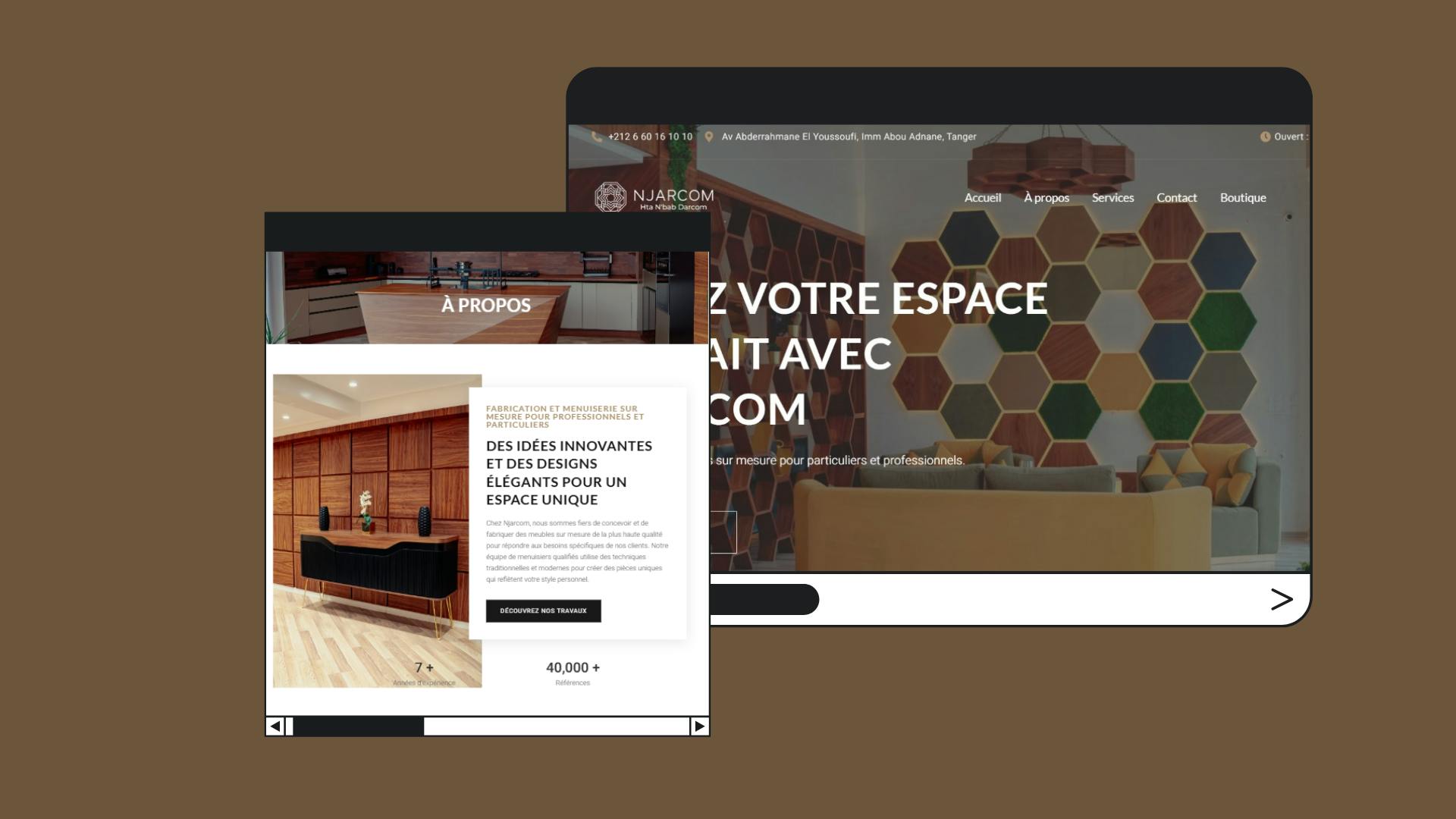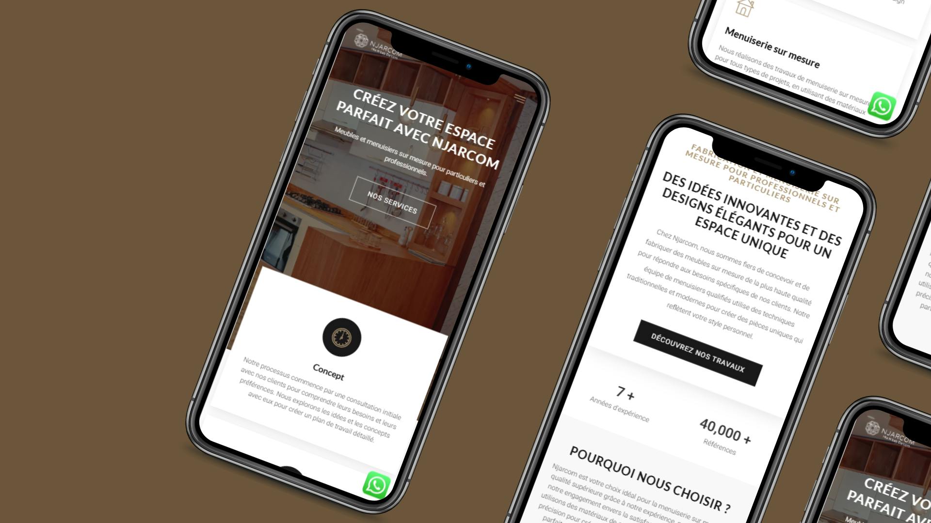 Njarcom vise à valoriser son expertise en menuiserie sur mesure et à faciliter la communication avec ses clients grâce à une présence digitale efficace.