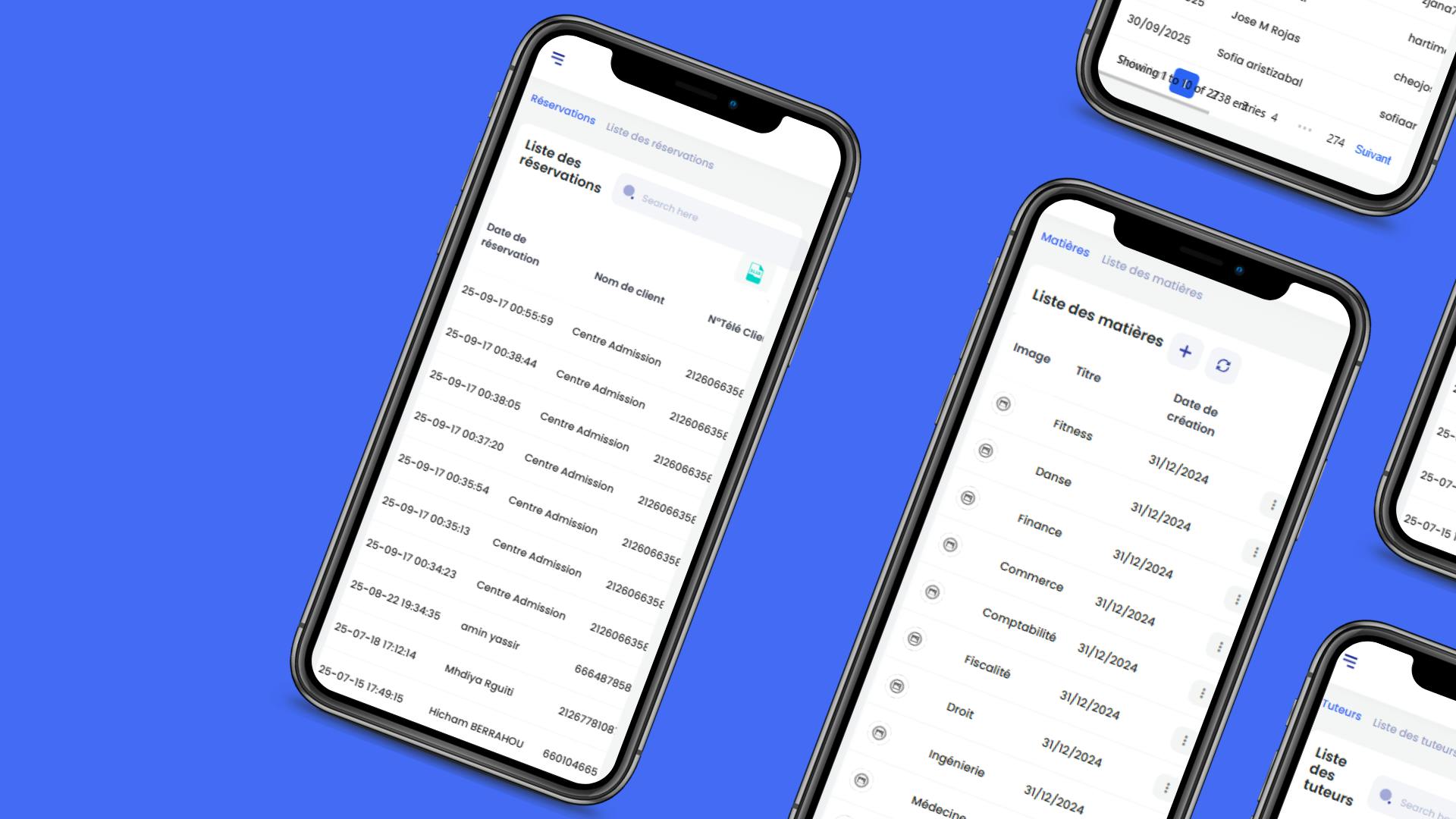 Création d’une application web performante, fluide et ergonomique avec un tableau de bord complet pour chaque profil.